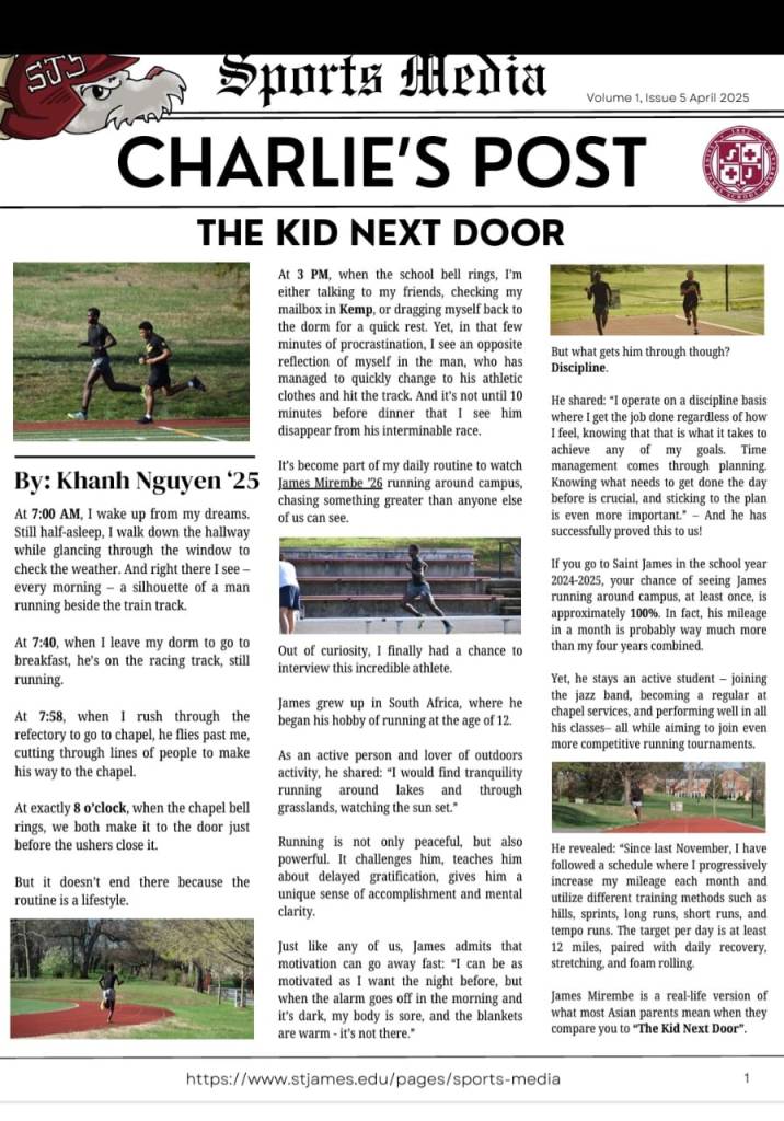I was featured in the Saint James School Sports Journal in recognition of my performance and leadership as a varsity student-athlete. The feature highlighted my dedication to training, academic excellence, and contribution to the school’s athletic culture, particularly through cross country and multi-sport participation.