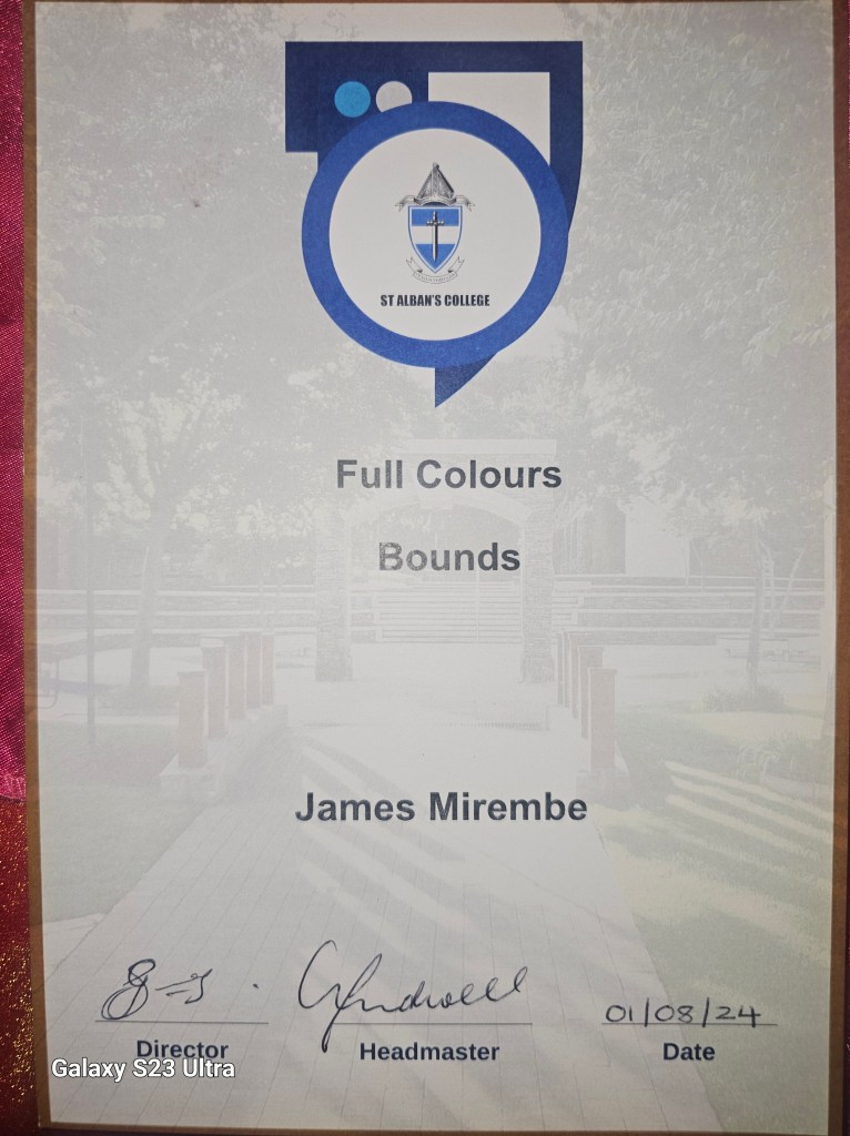 I was recognized as Man of the Month at St Alban’s College for excellence in academics, athletics, and leadership. This honor reflected consistent performance, discipline, and positive contribution to the school community.